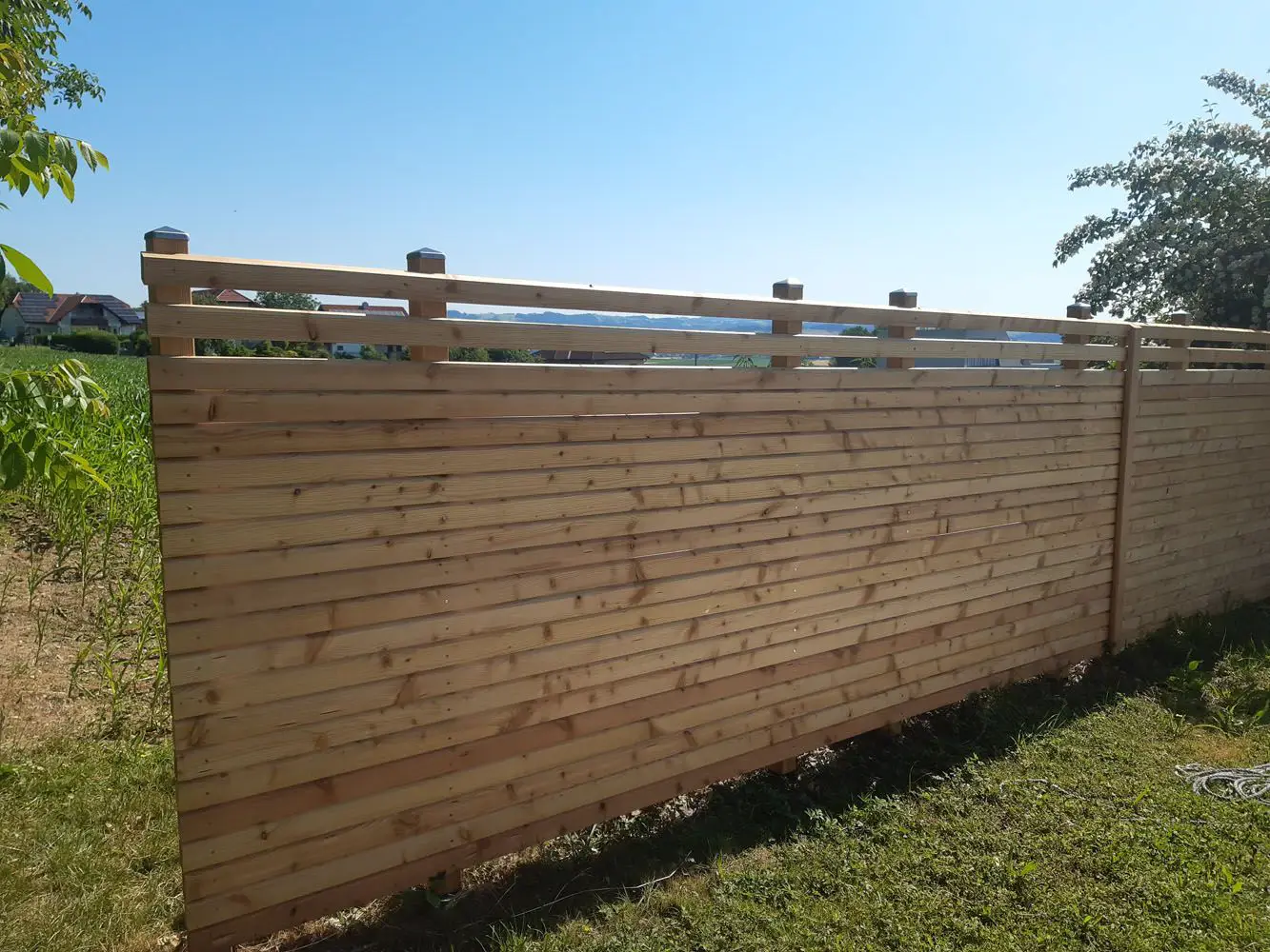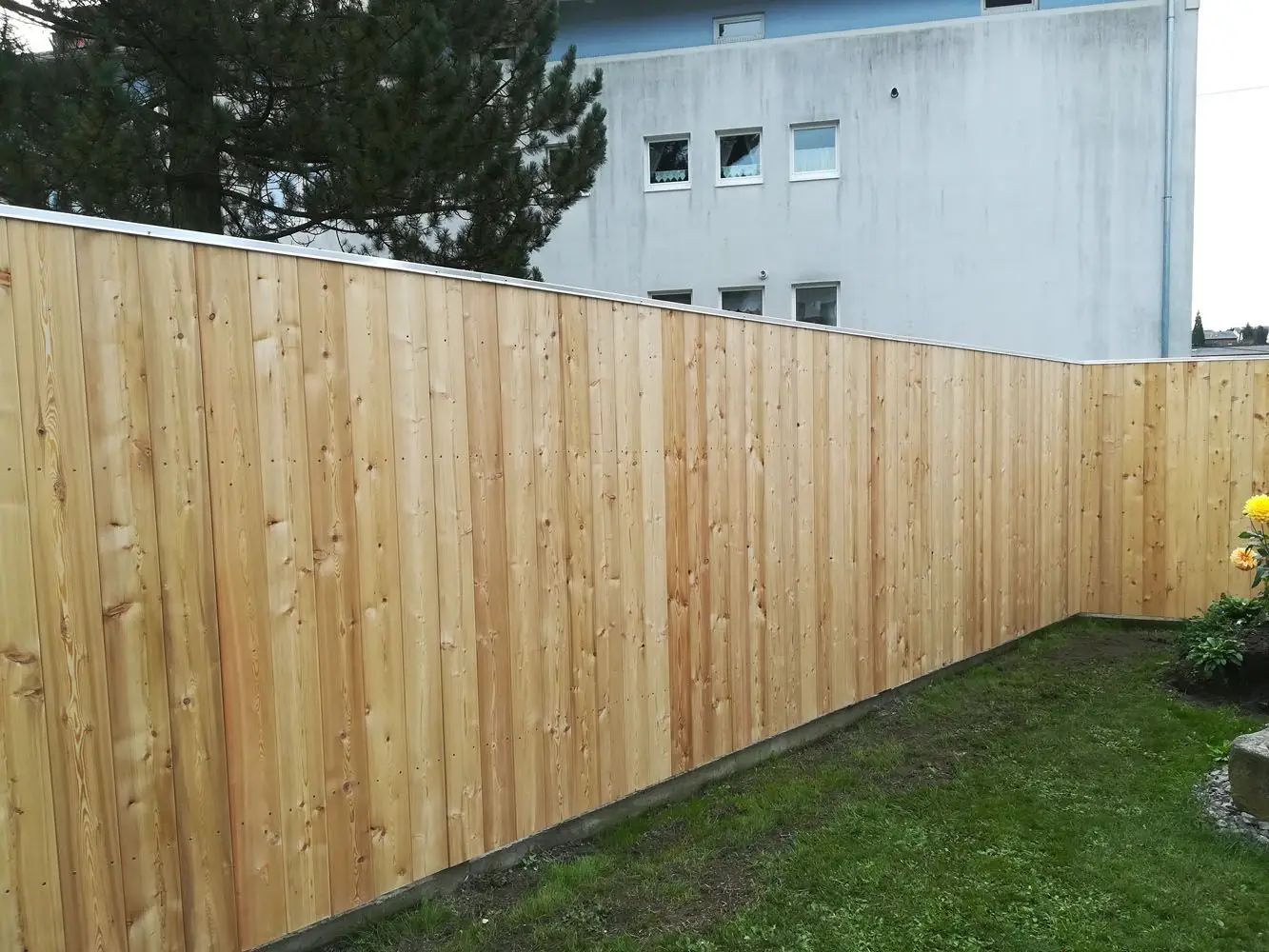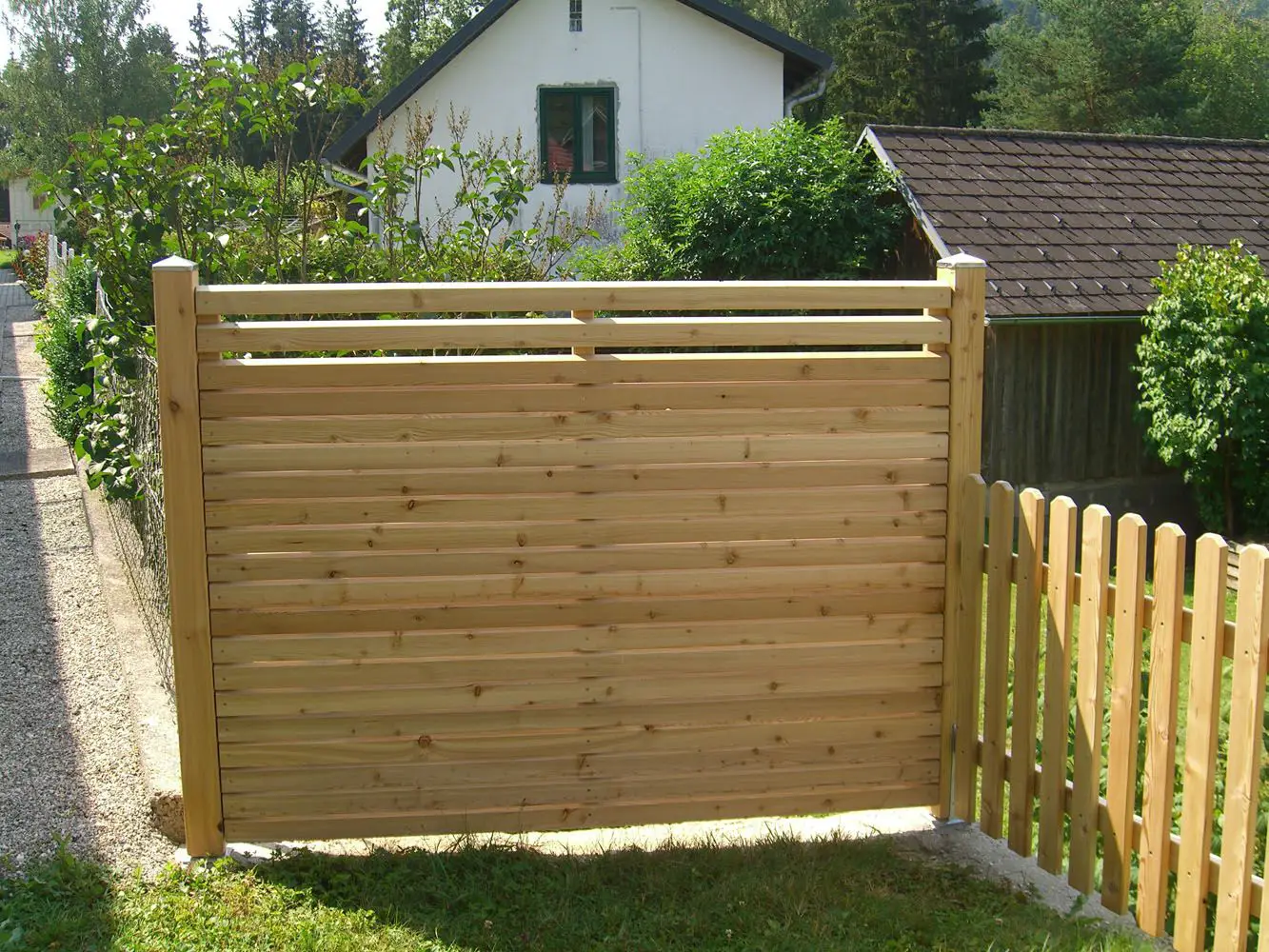 Ein Sichtschutz aus Holz schützt nicht nur vor fremden Blicken, sondern auch vor Wind und sorgt für eine angenehme Atmosphäre im Garten.